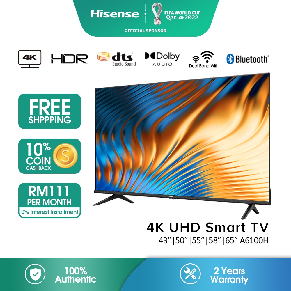 Hisense 4k Smart Uhd Tv Television 43 50 55 58 65 电视 A6100h Shopee Malaysia